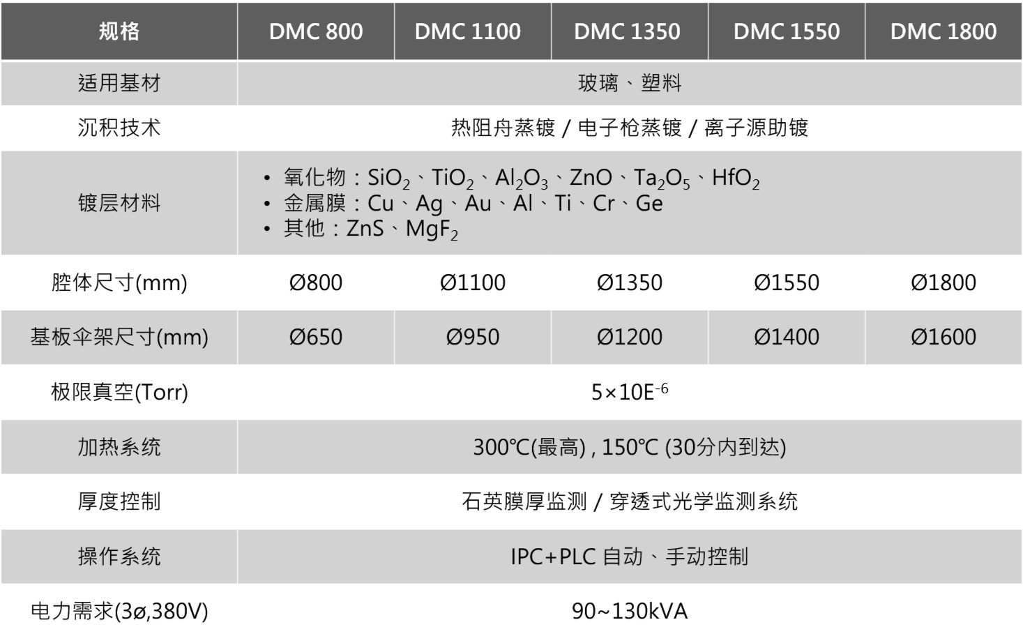 DMC系列凭借其 800~2050mm 的完整腔体级距,以及高精度光控 (OMS)与强力离子源 (IAD)的整合优势,能广泛覆盖从半导体、LED 到高阶精密光学的多元应用: